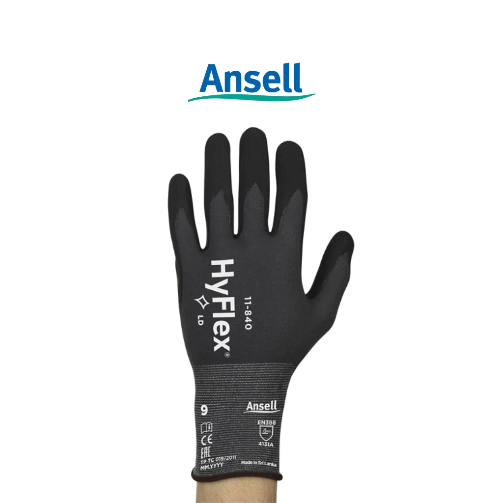 Ansell HyFlex 11-840 adalah sarung tangan kerja serbaguna yang dirancang untuk multipurpose general use dengan fokus pada grip, durability, dan breathability. Dengan panjang 200–270 mm, sarung tangan ini sesuai standar EN 388:2016 dan dapat dicuci pada suhu hingga 40°C, sehingga praktis digunakan berulang kali tanpa mengurangi kualitas.