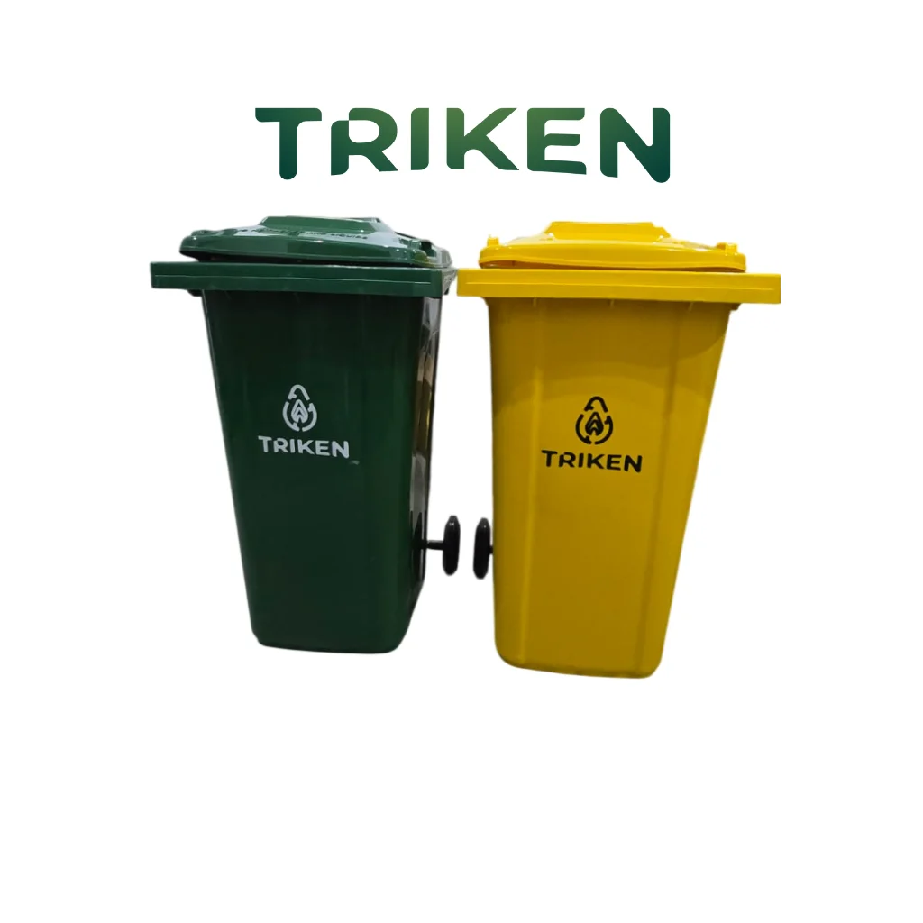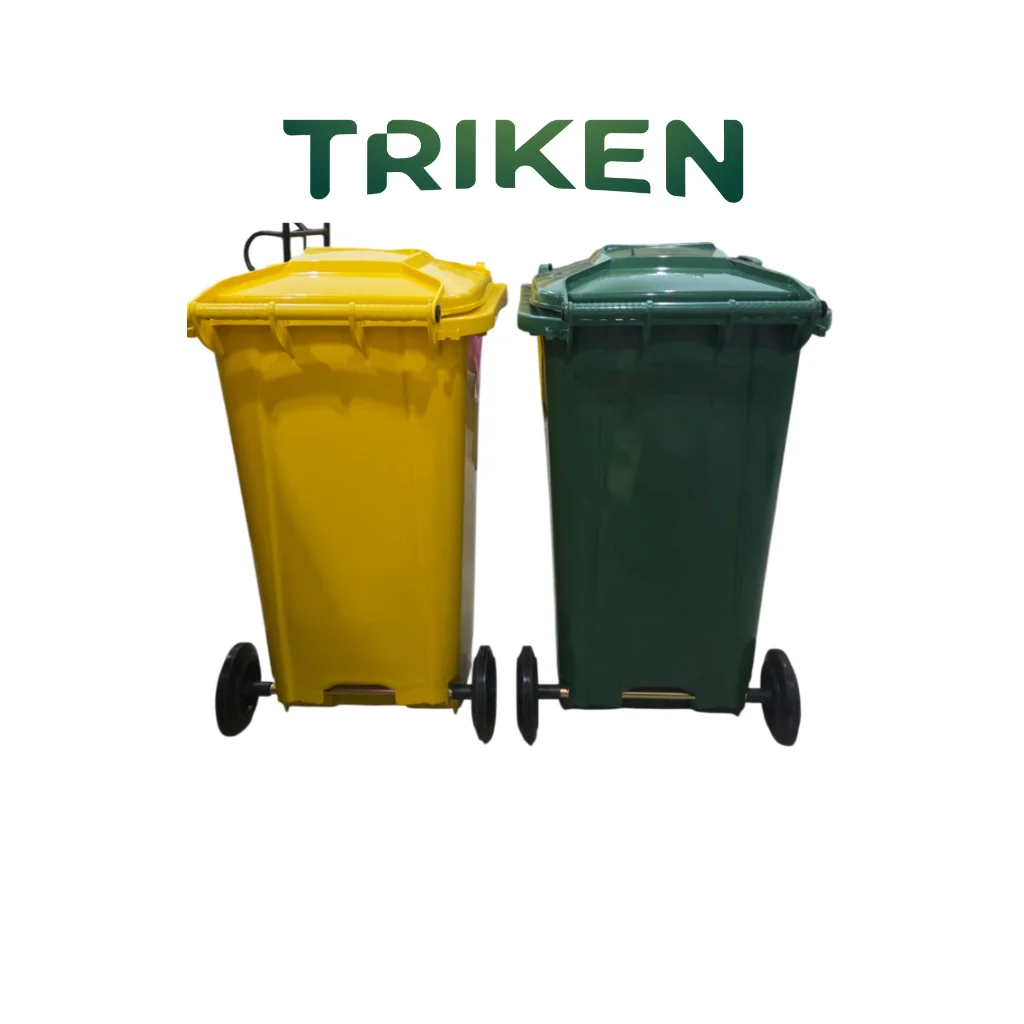 Triken Dust Bin 240G-19 DBT tersedia dengan roda memiliki warna hijau dan kuning, sangat cocok digunakan untuk industri-industri.